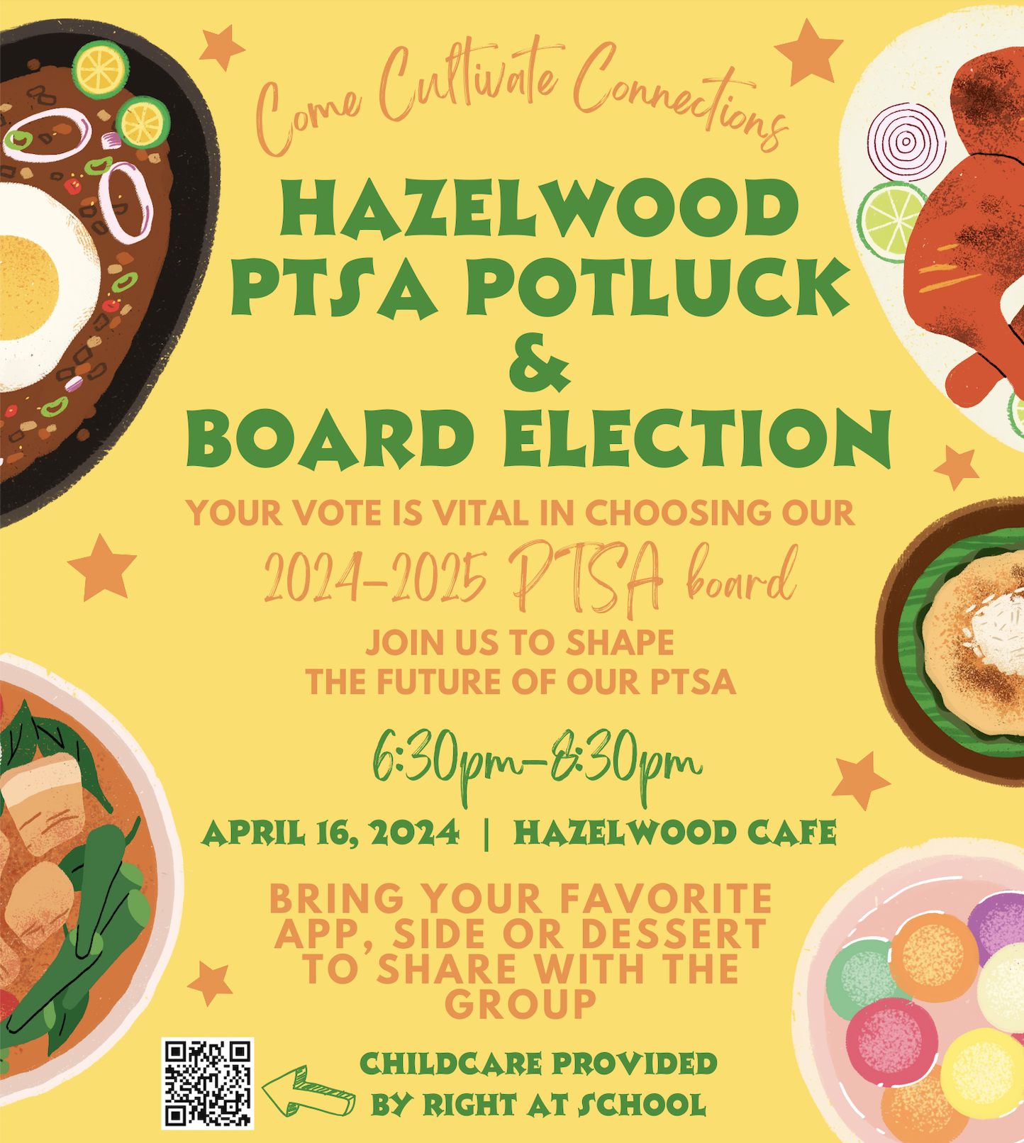 Join us for our monthly PTSA General Membership meeting! This is a great way to stay updated on what’s happening at Hazelwood, cultivate connections within our community, find opportunities to volunteer, and provide feedback on how to make your Hazelwood experience the best it can be!