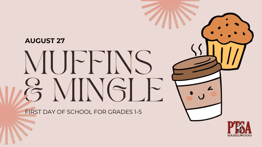 Join us as we kickoff an exciting new year! After student drop-off, all parents and caregivers are invited to Muffins & Mingle. This is a great way to connect with other parents and enjoy the company of old friends and new. We will meet in front of the school. Coffee and pastries will be provided by the PTSA.